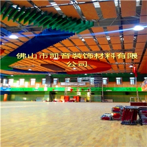 凱音吸聲體是專用于體育館空間吸聲裝飾作用的功能性裝飾材料,是一種分散懸掛于建筑空間上部,用以降低室內(nèi)噪聲或改善室內(nèi)音質(zhì)的吸聲構(gòu)件??臻g吸聲體具有用料少、重量輕、投資省、吸聲效率高、布置靈活、施工方便的特點。